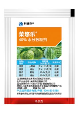 菜悠乐®是新型化学杀虫剂劲维华™(乙基多杀菌素)和爱收乐®(氟啶虫胺腈)的混配制剂,可同时用于防治多种作物上的刺吸式口器和咀嚼式口器害虫。经食品安全国家标准审评委员会审查,菜悠乐®有效成分乙基多杀菌素已经进入“绿色食品农药使用准则”目录,为绿色食品生产资料。